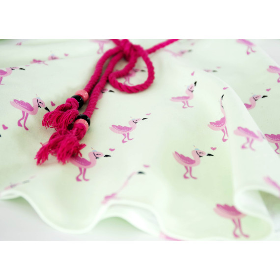Einfach Süß!! :) Toller Sweat in Bio-Qualität mit vielen zauberhaften Flamingos und Herzchen vor einem blassgrünen Hintergrund nach dem traumhaften Design von Mimirella :)