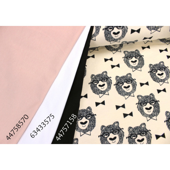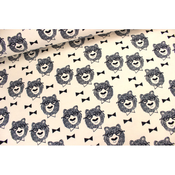 Wundervoller Sweatstoff mit grafischen Bären mit Brille und Fliege von Andrea Lauren.