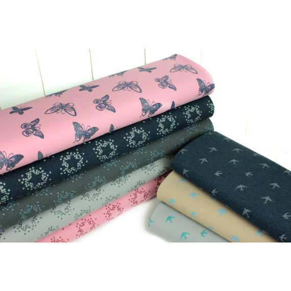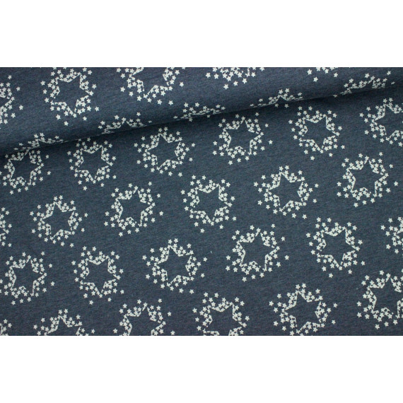 Toller French Terry Sweat mit glitzernden Sternen in Hellgrau auf einem blaugrau melierten Hintergrund :)