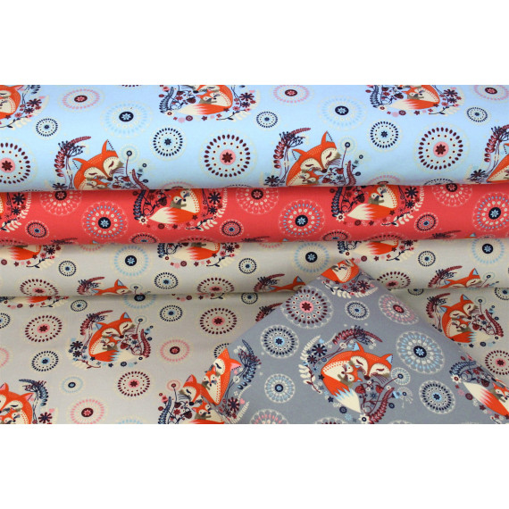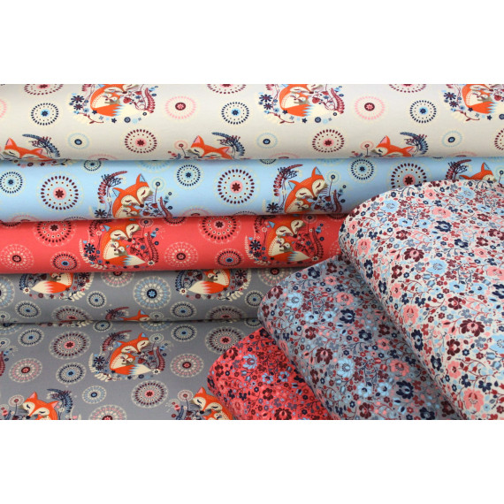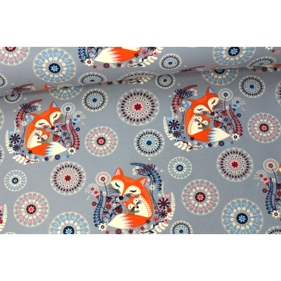 Super weicher Sweat Stoff mit einer niedlichen Fuchsfamilie, umgeben von Pusteblumen-Mandalas:)