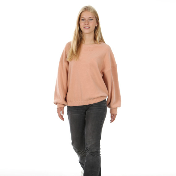 FRAU EMA ist ein schlichter, kurzer Sweater. Die weiten, eingekräuselten Ärmel mit Bündchenabschluss und überschnittene Schultern verleihen dem Schnitt eine Extaportion Lässigkeit. Der Saum ist mit einem Gummi leicht gerafft – für einen angenehmen Sitz und maximale Bewegungsfreiheit. Ein klassischer Rundhalsausschnitt rundet das Design ab.