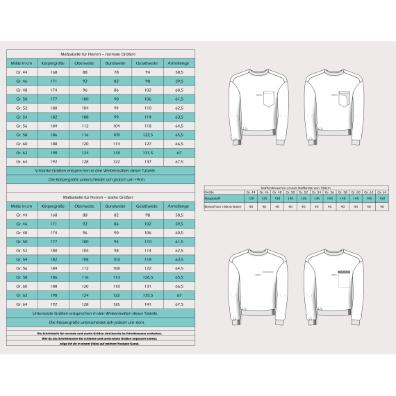Im Schnittmuster enthalten sind die Herrengrößen 44–64 für normale und starke Größen.