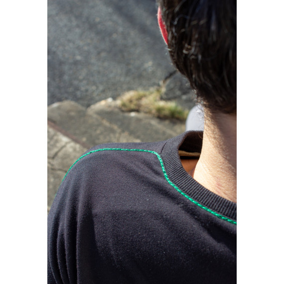 Als Material eignet sich French Terry, Sweat und Co., sowie Bündchenware für die Abschlüsse.