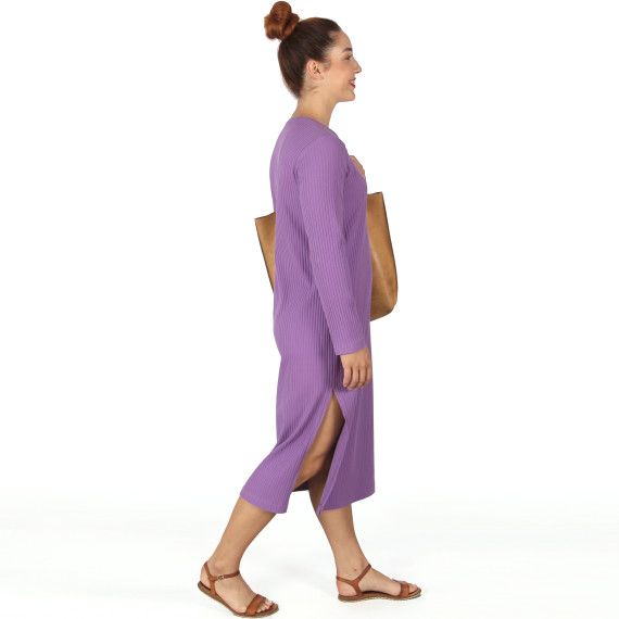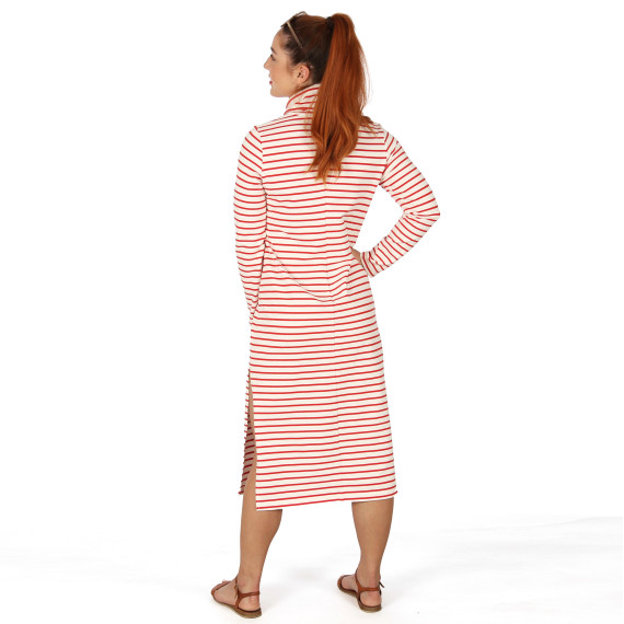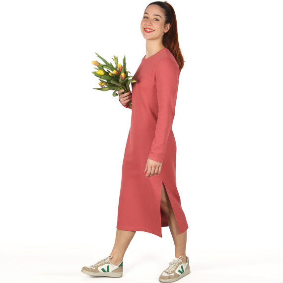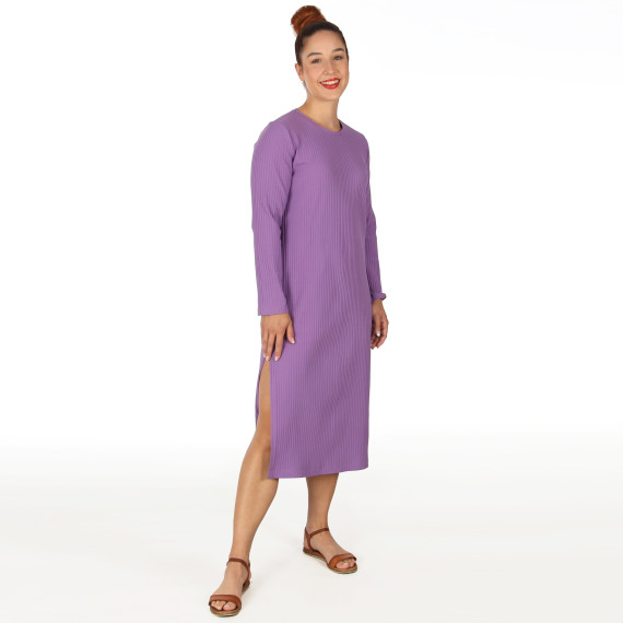 FRAU NORA ist ein schnell genähtes Kleid, das so supergemütlich ist, dass Du es gar nicht mehr ausziehen willst. Mit FRAU NORA kannst Du Dich auf ´ s Sofa kuscheln oder auf der Cocktailparty glänzen. Das schlanke Kleid schmiegt sich durch die Teilungsnaht im Rücken schön an Deinen Körper. Ein Schlitz in der Seitennaht gibt Dir genug Bewegungsfreiheit. Jetzt musst Du nur noch entscheiden, ob Du einen Rollkragen oder ein Halslochbündchen nähen möchtest und schon kann es losgehen!