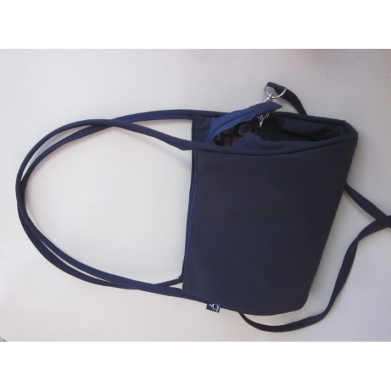 Der Materialbedarf ist entsprechend der „Kleine“ gering, Stoffreste finden hier gute Verwendung. Es eignen sich vor allem Baumwoll-Webstoffe. Für das Innenteil dünnere, außen können auch dickere Stoffe verwendet werden, z.B. Snappap, (Kunst-)Leder, Taschenstoff, Jeans etc.