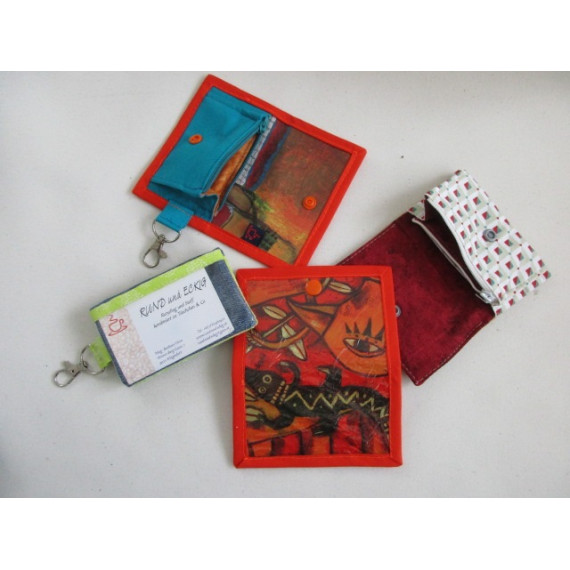 Wer will, kann auch noch einen Schlüsselring und/oder Karabiner anbringen. Damit lässt sich die MiniWallet z.B. an einer Schlaufe im Rucksack oder einem Reißverschluss-Schieber befestigen, sodass man sie schnell zur Hand hat.