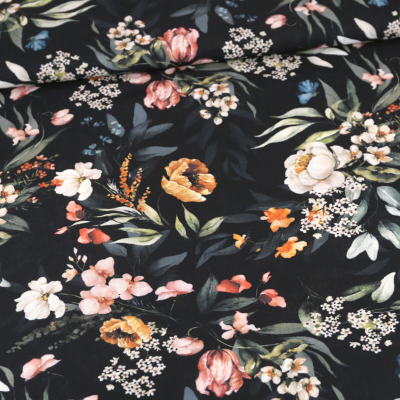 Tislin - leichter Dekostoff - Blumengruß - Wildblumen - Schwarz - abby and amy