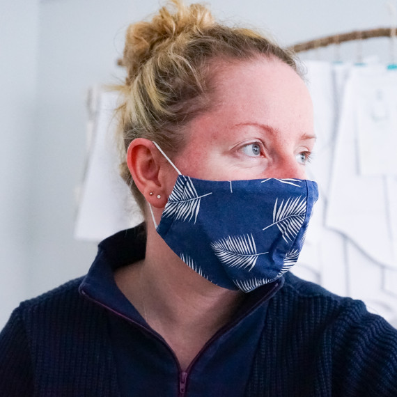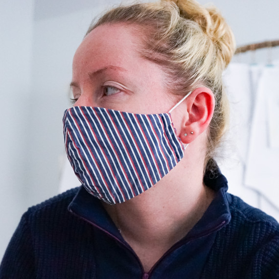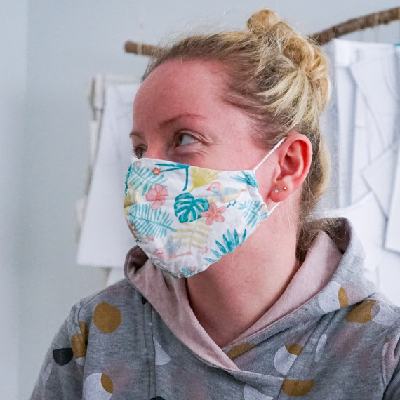 Die Maske wird zweilagig genäht, am Besten geeignet sind Blusen-/Hemdenstoffe wie Popeline. Nicht zu dick, aber fein gewebt.