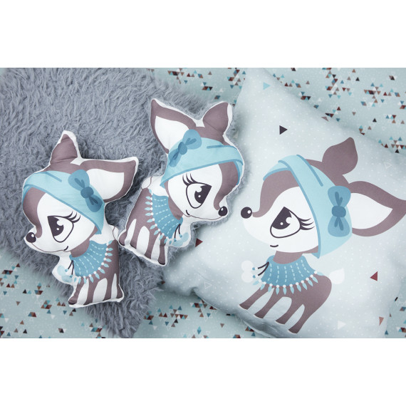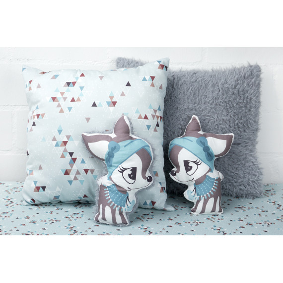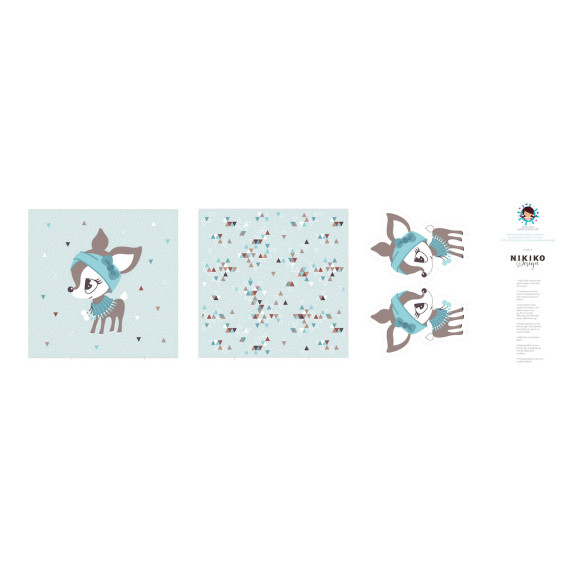 Ein ungenähtes Kissen mit Kitzmotiv ist 40x40cm groß.
