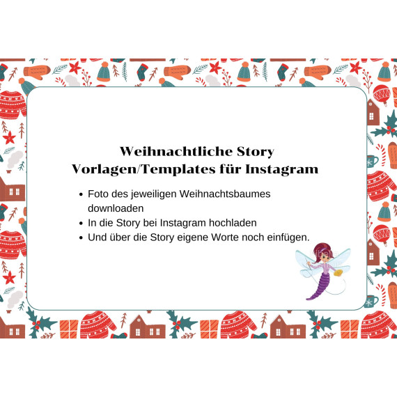 Lade dir die gewünschte Weihnachtsbaum-Vorlage in deine Story und ergänze sie über die Instagram-App mit Worten. Die Story-Bilder haben nach dem Kauf keine Wasserzeichen.