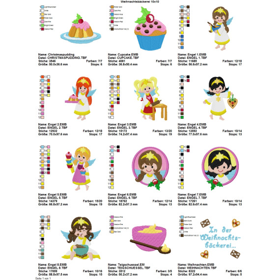 In diesem Set sind 12 verschiedene Motive als Stickdatei für den 10x10cm Rahmen (oder größer) enthalten. Die genaue Motiv-Übersicht dieses Sets seht Ihr auf dem zweiten Bild.