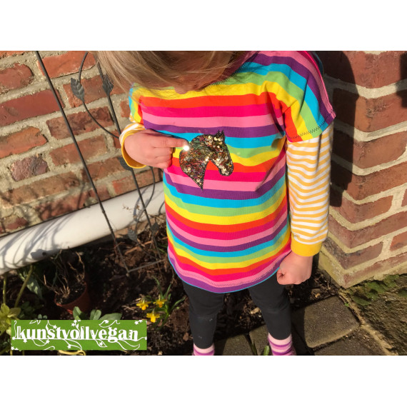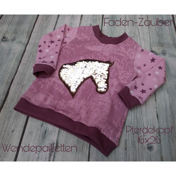 Seit ewigen Zeiten liegt bei mir meterweise dieser tolle Wendepailletten-Stoff herum, aber außer mal einem Rechteck oder einem Herz war es mir immer zu aufwändig damit etwas zu applizieren. Da meine Tochter diese Stoffe aber heiß und innig liebt musste ich mir als Mama einfach endlich etwas dafür einfallen lassen. Ab sofort bekommt Ihr bei uns verschiedene Stickmotive speziell für Wendepaillettenstoffe, normale Paillettenstoffe oder andere empfindliche Stoffe die z. B. leicht ausreissen können (z. B. Folienjersey etc.).