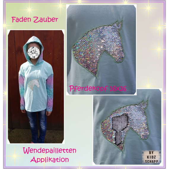 Wendepailletten-Applikation Pferdekopf - Stickdatei-Set für den 10x10cm bis 18x30cm Rahmen