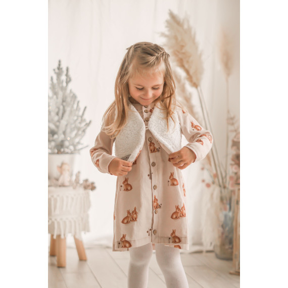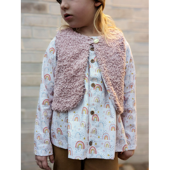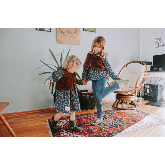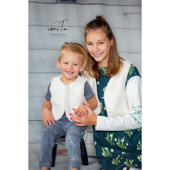 Die Weste wird doppellagig genäht und kann dadurch auch gewendet werden. Sie eignet sich prima in der kalten Jahreszeit zum Drüberziehen, sodass der Brustkorb deines Kindes warm eingepackt ist.