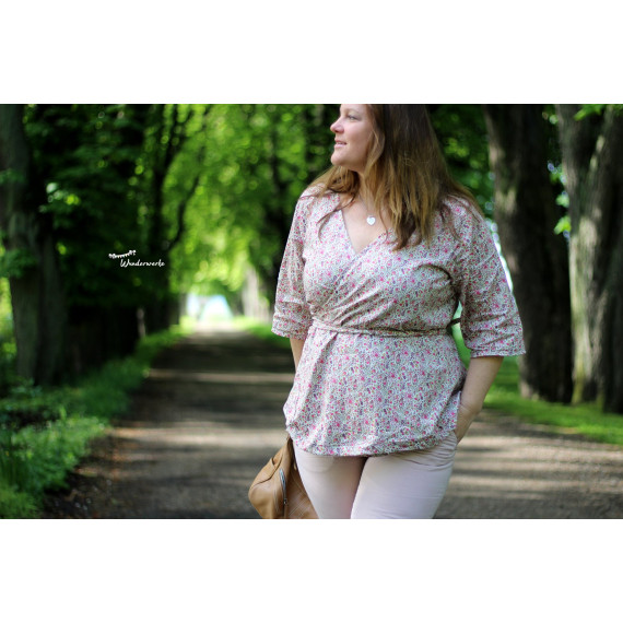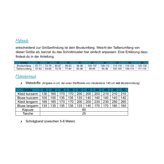 Das Wickelkleid/Bluse wird aus leichten bis mittelschweren Blusenstoffen (Gewebe) genäht.