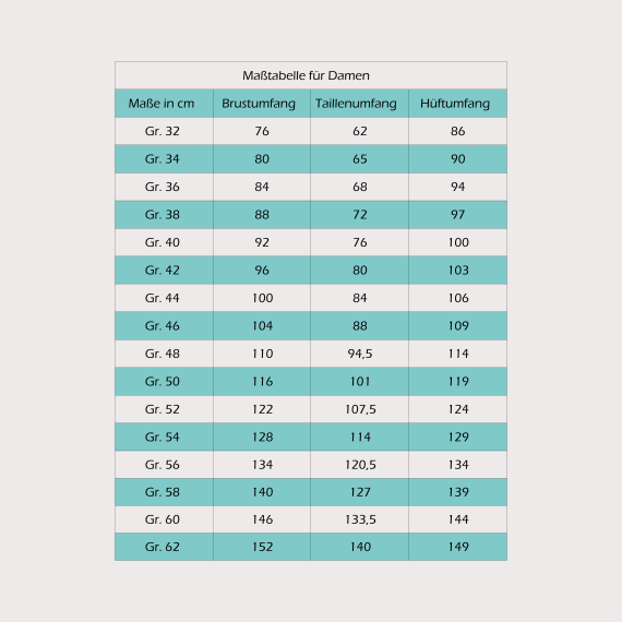 | Größen: | 32,34,36,38,40,42,44,46,48,50,52,54,56,58,60,62 |