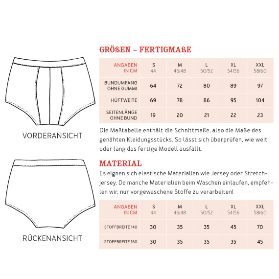 - Umfang PDF: Nähanleitung - 12 Seiten, Schnittmuster - 4 Seiten (die zusammengeklebt werden müssen)