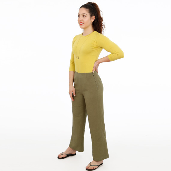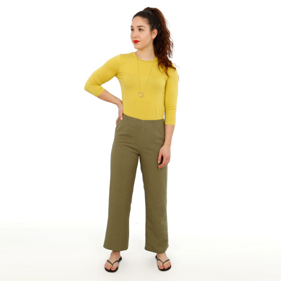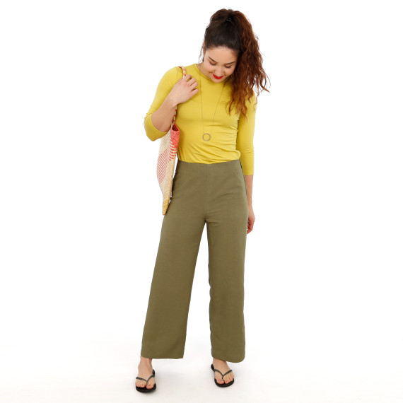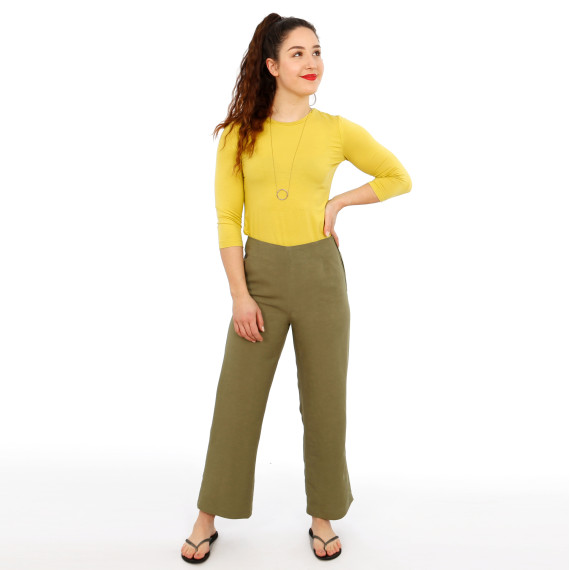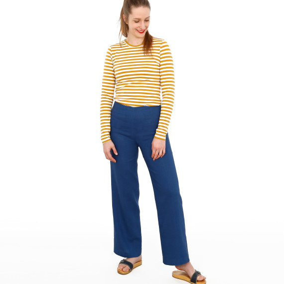 FRAU ELENA ist eine schlichte, High-Waist-Hose. Mit vier Abnähern schmiegt sie sich eng an die Taille, die Knöchel umspielt eine angenehme Weite, ein in die Seitennaht eingenähter Reißverschluss lässt Dich trotzdem leicht in Deine Hose hineinschlüpfen. FRAU ELENA liebt fließende weiche Stoffe, egal ob Leinen oder Wolle und passt sich mit zwei Beinlängen jeder Jahreszeit an.