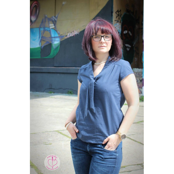 Alma ist eine locker sitzende Sommerbluse bzw. Sommerkleid, mit dekorativem Schleifenband am Ausschnitt oder einfachem V-Ausschnitt. Genäht wird sie aus Webware, es eignen sich alle weich fallenden Blusen- bzw. Kleiderstoffe, wie z.B. Viskose, dünne Baumwolle, Seide, dünner Jeans und vieles mehr. Im E Book sind wieder verschiedene Varianten enthalten: ärmellos oder mit kurzen Ärmel, mit Schleife oder V-Ausschnitt, Saum entweder gerade oder hinten länger und abgerundet oder das Ganze als Kleid, mit Tunnelzug oder ohne. Alma gibt sich ,je nach Stoff, lässig für die Freizeit oder auch schick für Büro und andere Anlässe. Die leichte Kräuselung in Vorder- und Rückteil und der locker fallende Schnitt zaubern eine bequeme Passform, auch in den größeren Größen. Also Alles in Allem ein Must Have für viele Gelegenheiten.