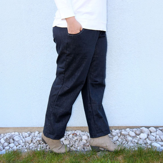 Im E-Book werden alle Schritte bis zur fertigen Hose einzeln mit vielen Fotos dokumentiert. Eine detaillierte Anleitung zur Anpassung an eigene Maße ist enthalten.