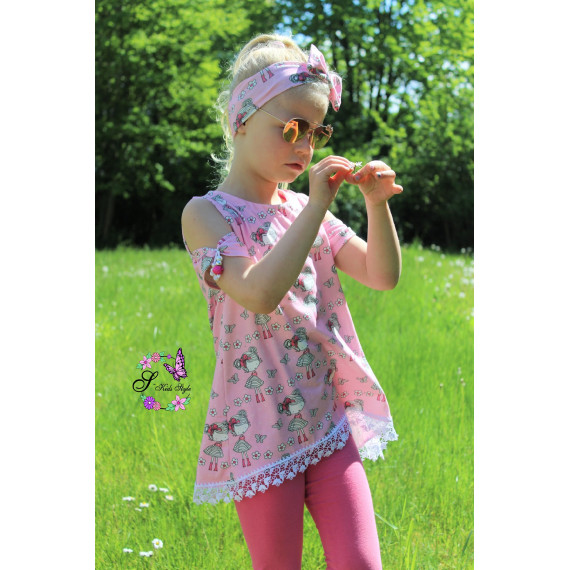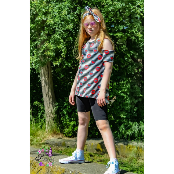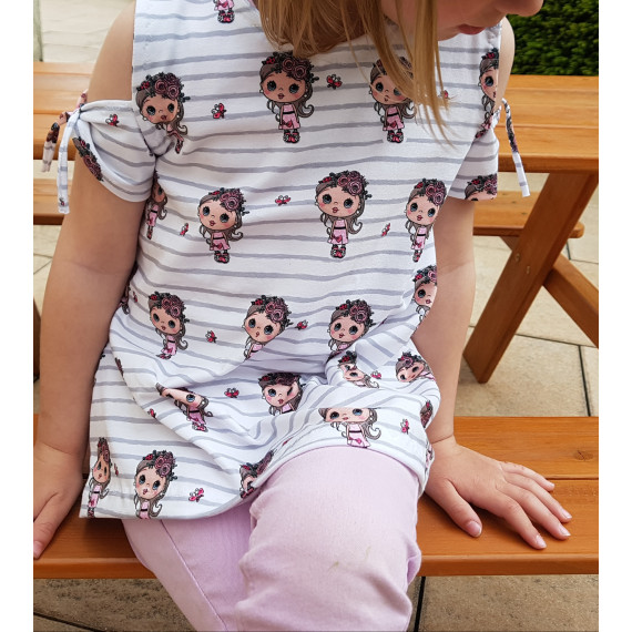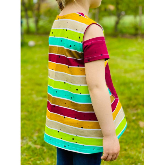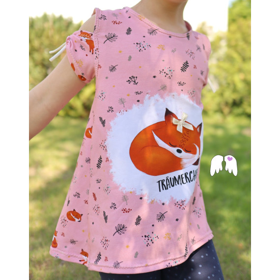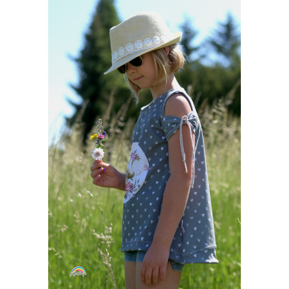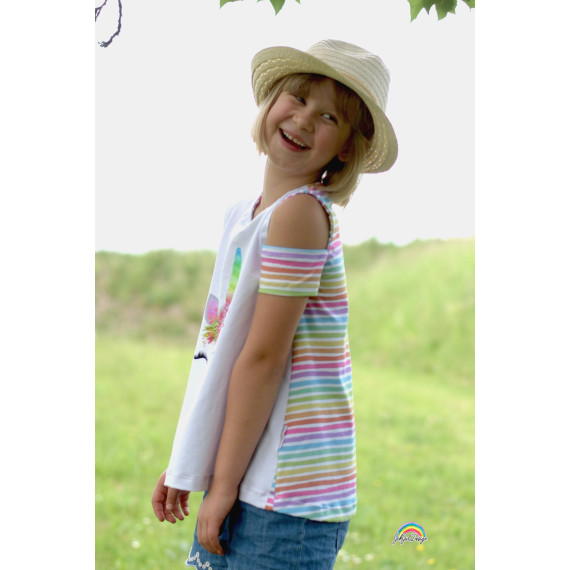Supercool und lässig: Allegra ist ein Sommershirt für alle stylischen Mädels! Es ist von Gr. 110 – 164 vorzugsweise aus Jersey nähbar, aber auch gut dehnbaren Sommersweat kannst du verwenden.