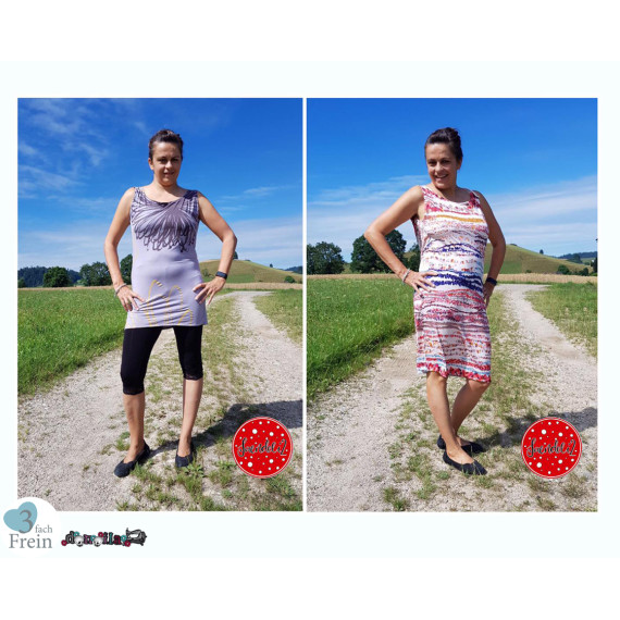 NaDa´s Sommerkleid ist ein enges, jedoch leger fallendes Kleid mit weitem Wasserfall im Rücken. Ein Band im Schulterbereich rundet das ganze perfekt ab. Im eBook sind 3 Kleidlängen vorhanden: mini, midi und maxi. Ebenfalls ein seitlicher Schlitz sorgt zum perfekten Hingucker.