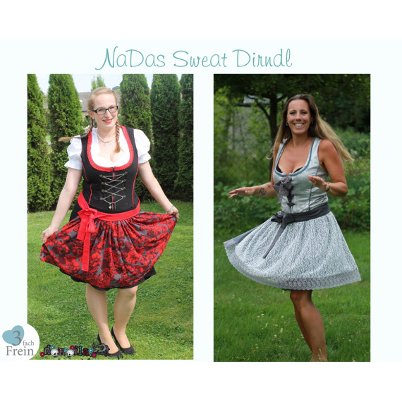 NaDa´s Sweatdirndl ist ein modernes Miederdirndl mit Stilbruch. Dieses Dirndl wird aus festen, aber elastischen Stoffen wie Sweat, French Terry oder auch Strechjeans genäht. Das sexy Vorderteil wird geschnürt und kann ganz toll verziert werden. Es zaubert ein super schönes Dekoltee und durch die elastischen Stoffe ist es ideal für viel Bewegungsfreiheit. Ein lockerer Rock, der sich wunderbar dreht und in zwei längen genäht werden kann, dazu eine tolle Schürze. Bebilderte Anleitung inkl. Schnittmuster Damen Gr.32-48 NaDas SweatDirndl ist ein gemeinsames Projekt von Danaila und 3fachFrein. Achtung, es handelt sich nicht um ein fertig genähtes Produkt, sondern um einen Downloadartikel.