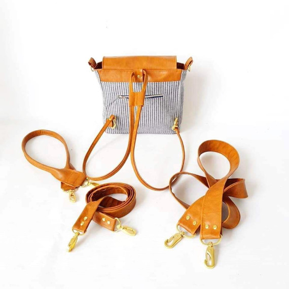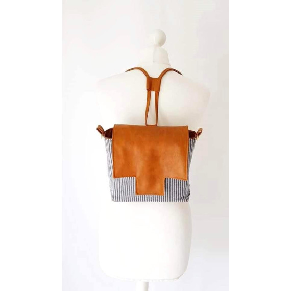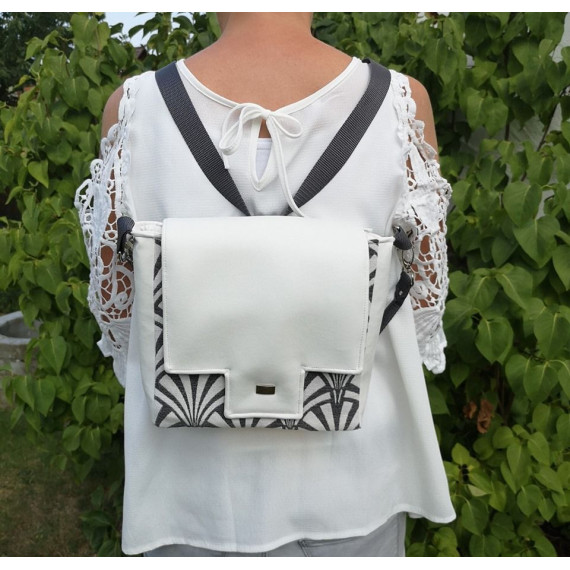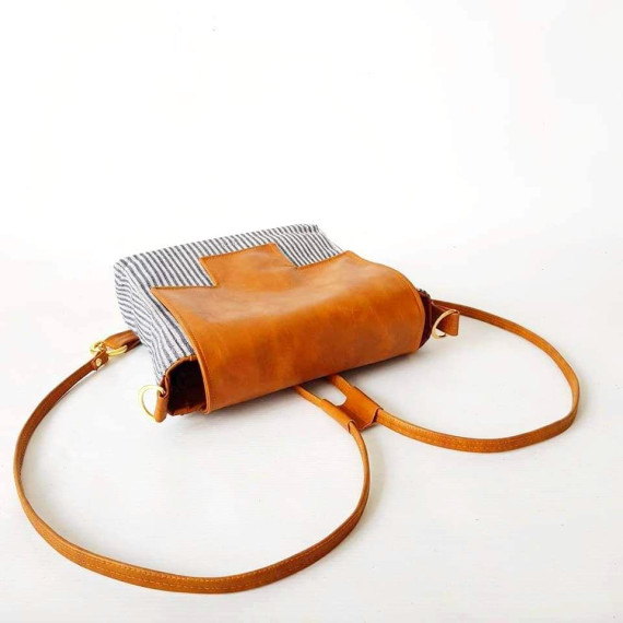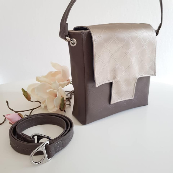 Du kannst Janni aus Lederimitat, Canvas oder Webware nähen. Die Nahtzugaben sind bereits enthalten und Fadenläufe, sowie Brüche sind markiert.