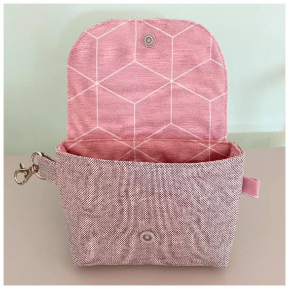ohShorti besteht aus einem Außenteil, einem Innenteil und einer gedoppelten Taschenklappe. Geschlossen wird sie mit einem Magnet- oder Druckknopf. Optional kannst Du eine separate Aufhängung nähen oder ganz praktisch mit einer Öse arbeiten.