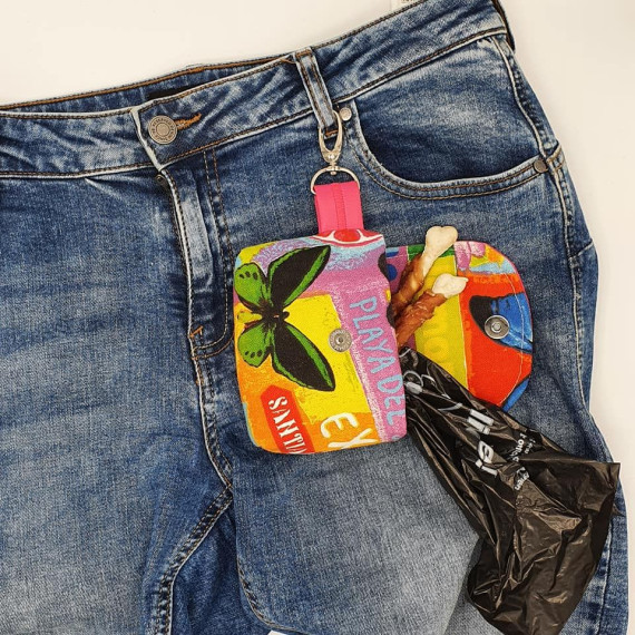 Du kannst ohShorti separat in die Tasche legen oder ganz praktisch an deine eingenähte Aufhängung mit Karabiner oder Schnappring einhängen.