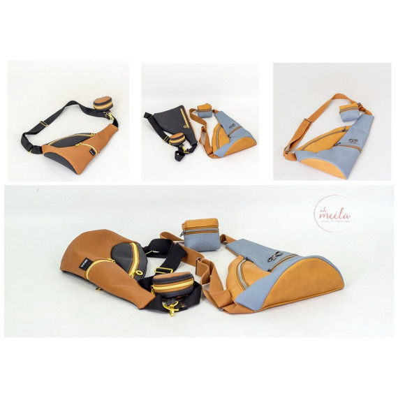 Der Korpus besteht aus 4 Hauptteilen und zwei Schließungen für zwei verschiedene Fächer sowie optional einem Reißverschlussfach im Rückteil zum Körper hin.