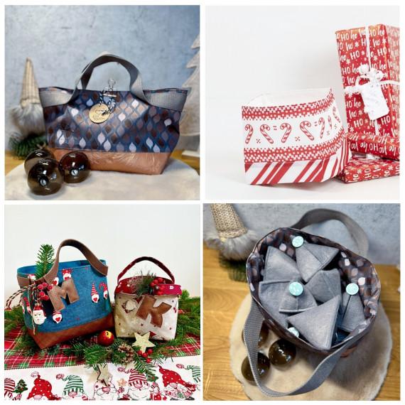 Ich persönlich mag ohTaaki etwas edler aus einem Mix aus Kunstleder im unteren Bereich und Webware, stabil verstärkt sehr gerne, aber es gehen ganz nach Geschmack alle Stoffarten und beim Spielen mit Motivstoffen (z.B. aus Weihnachtsstoffen) erstrahlt ohTaaki immer wieder in einem neuen Glanz dem Anlass entsprechend.